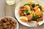 Sałatka z grzankami brokuły, marchew, jajko i żyto