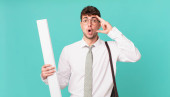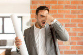 Zdjęcie "architekt wyglądający na nieszczęśliwego i zestresowanego, gest samobójczy robiący znak pistoletu ręką, wskazujący na głowę" może być wykorzystywane do celów osobistych i komercyjnych zgodnie z warunkami zakupionej licencji Royalty-free. Obraz jest dostępny do pobrania w jakości wysokiej rozdzielczości do 5760x3840.
