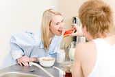 stołówki - nastoletnia para zabawy podczas przerwy obiadowej