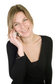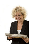 atrakcyjny biznes dama portret na biały z telefonu komórkowego i teczki