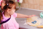 dziecko do pieczenia - dziewczynka wyrabiania ciasta w kuchni