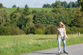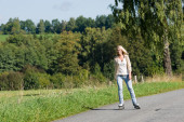 Bieganie - sprawny kobieta działa na drodze w przyrodzie