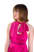 piękna dziewczyna w różowej sukience na białym tle na białym tle