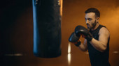 sportowa kobieta w rękawiczkach bokserskich ćwicząca na siłowni