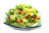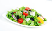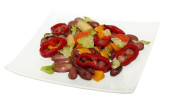 Sałatka z papryki, sałata, oliwki i cebuli na talerz kwadratowy