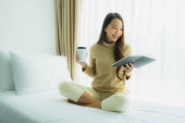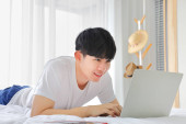 Zdjęcie "Azjatka pracuje online z laptopem na łóżku dla nowego normalnego życia w okresie kwarantanny z covid-19" może być wykorzystywane do celów osobistych i komercyjnych zgodnie z warunkami zakupionej licencji Royalty-free. Obraz jest dostępny do pobrania w jakości wysokiej rozdzielczości do 5760x3840.