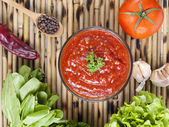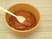 łyżka znajduje się płyta z aromatyczny, soczysty i smaczny sos