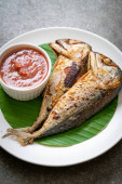 Zdjęcie "Smażona Tilapia Ryby z sosem czosnkowym Basil chili na wierzchu - domowe jedzenie" może być wykorzystywane do celów osobistych i komercyjnych zgodnie z warunkami zakupionej licencji Royalty-free. Obraz jest dostępny do pobrania w jakości wysokiej rozdzielczości do 5760x3840.