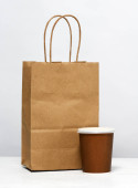 Puste pakiety dostaw żywności na szarym stole teksturowanym