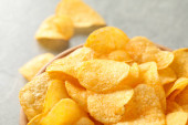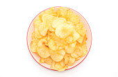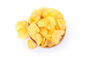 Miska ze smacznymi chipsami ziemniaczanymi, widok z góry