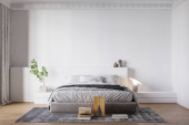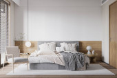 Zdjęcie "Sypialnia wnętrz Mockup ścienny - Rendering 3d, Ilustracja 3d" może być wykorzystywane do celów osobistych i komercyjnych zgodnie z warunkami zakupionej licencji Royalty-free. Obraz jest dostępny do pobrania w jakości wysokiej rozdzielczości do 5760x3840.