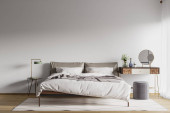Zdjęcie "Sypialnia wnętrz Mockup ścienny - Rendering 3d, Ilustracja 3d" może być wykorzystywane do celów osobistych i komercyjnych zgodnie z warunkami zakupionej licencji Royalty-free. Obraz jest dostępny do pobrania w jakości wysokiej rozdzielczości do 5760x3840.