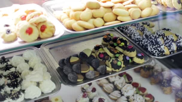 Różne rodzaje pysznych słodyczy bengalskich są rozmieszczone w gablocie w cukierni w Kalkucie (Kalkuta)