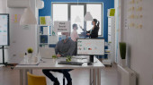 Dwóch współpracowników dotykających łokcia podczas globalnej pandemii koronawirusowej