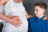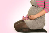 kobieta w ciąży wygląda na dziecięce obuwie dziecięce, marzenia