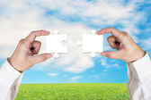 dwóch mężczyzn przytrzymanie puste zagadki na teren trawa