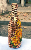 Pomalowany złotym i czerwonym szklanym słoikiem kawy. Okazało się, że to kolorowy wazon..