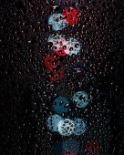 Zdjęcie "Cząsteczka koronawirusu na mokrym niebieskim oknie z kroplami deszczu koncepcja autoizolacji zdjęć. Covid - 19 koncepcja wykończenia." może być wykorzystywane do celów osobistych i komercyjnych zgodnie z warunkami zakupionej licencji Royalty-free. Obraz jest dostępny do pobrania w jakości wysokiej rozdzielczości do 5760x3840.