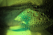 Znak Wirus Covid-19 lub Corona w kroplach deszczu na oknie.