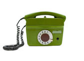 Zielony telefon stylu retro na białym tle. Vintage słuchawkowy odbiornik telefonu.