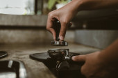 Zdjęcie "Barista zmierzyć kawę w proszku i warzenia czarnej kawy moka przy użyciu moka ekspres do kawy." może być wykorzystywane do celów osobistych i komercyjnych zgodnie z warunkami zakupionej licencji Royalty-free. Obraz jest dostępny do pobrania w jakości wysokiej rozdzielczości do 5760x3840.