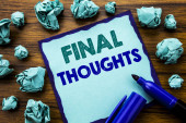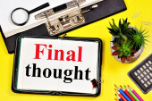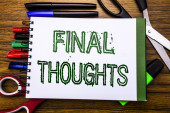 Koncepcja biznesowa oznaczająca FINAL THOUGHTS ze zwrotem na kartce papieru.