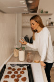 Dziewczyna mydlarz trzyma w rękach i wdycha aromat świeżo warzonego mydła.Proces gotowania.Home spa.Sall biznesu