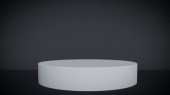 Stojak na produkt izolowany na białym tle, realistyczne okrągłe podium, eksponat szary kolor czarny. Scena geometryczna, postument muzealny. Ilustracja 3D