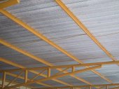 Stalowa konstrukcja dachu. Żarówka księżycowa. Konstrukcja stalowa z dachówką. Architektoniczna konstrukcja dachu. Duży układ dachu stosowany w zakładach przemysłowych.