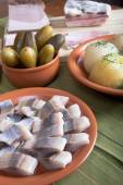 Typowa portugalska ryba domowej roboty z ziemniakami, czosnkiem i oliwą z oliwek.
