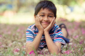 przystojny dziecko indyjski, uśmiechając się do kamery