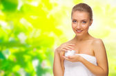 Zdjęcie "kobieta z ciała krem na tle kwiatów" może być wykorzystywane do celów osobistych i komercyjnych zgodnie z warunkami zakupionej licencji Royalty-free. Obraz jest dostępny do pobrania w jakości wysokiej rozdzielczości do 5760x3840.