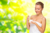 Zdjęcie "kobieta z ciała krem na tle kwiatów" może być wykorzystywane do celów osobistych i komercyjnych zgodnie z warunkami zakupionej licencji Royalty-free. Obraz jest dostępny do pobrania w jakości wysokiej rozdzielczości do 5760x3840.