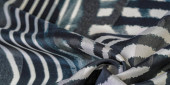 jedwabna tkanina, czarno-białe abstrakcyjne linie. Magiczny kształt abstrakcyjnego czarno-białego wzoru. Retro nowoczesny wystrój, sztuka tekstylna, design, faktura, tło, wzór