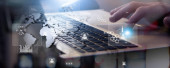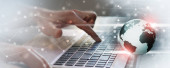 Koncepcja technologii internetowych ludzie połączenia środowiska biznesowego. media mieszane