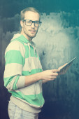 mężczyzna pracujący na cyfrowy tablicowy