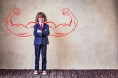 Zabawne dziecko i starszy mężczyzna udają biznesmenów. Dziadek i dziecko bawią się w domu. Edukacja, start-up i koncepcja biznesu