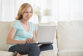 młoda kobieta z komputera tablet dotykowy ekran
