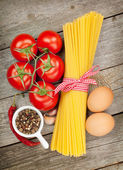 Zdjęcie "makaron, pomidory, jajka i przyprawy" może być wykorzystywane do celów osobistych i komercyjnych zgodnie z warunkami zakupionej licencji Royalty-free. Obraz jest dostępny do pobrania w jakości wysokiej rozdzielczości do 5760x3840.