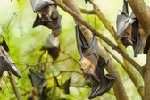 Szaro-głowy Latający Lis kołysze się na drzewie za dnia