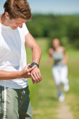 Młoda para biegania na świeżym powietrzu wiosnę natura
