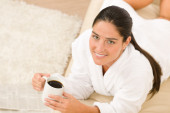 Zdjęcie "młoda kobieta w biały szlafrok z kawy w salonie" może być wykorzystywane do celów osobistych i komercyjnych zgodnie z warunkami zakupionej licencji Royalty-free. Obraz jest dostępny do pobrania w jakości wysokiej rozdzielczości do 5760x3840.