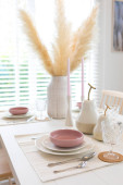 Zdjęcie "niebieski i biały talerz ustawienie na drewnianym stole w nowoczesnym domu." może być wykorzystywane do celów osobistych i komercyjnych zgodnie z warunkami zakupionej licencji Royalty-free. Obraz jest dostępny do pobrania w jakości wysokiej rozdzielczości do 5760x3840.