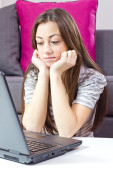zakupy - kobieta z karty kredytowej i laptopa w salonie