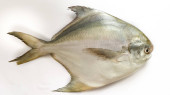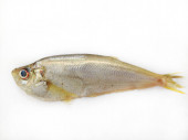 Świeże ryby malabarskie Trevally Izolowane na białym tle..