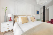 Zdjęcie "Luksusowe łóżko w pobliżu łazienki w domu" może być wykorzystywane do celów osobistych i komercyjnych zgodnie z warunkami zakupionej licencji Royalty-free. Obraz jest dostępny do pobrania w jakości wysokiej rozdzielczości do 5760x3840.