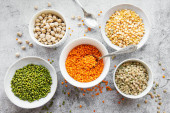 Zdjęcie "Miski z różnymi rodzajami roślin strączkowych na szarym tle betonowym" może być wykorzystywane do celów osobistych i komercyjnych zgodnie z warunkami zakupionej licencji Royalty-free. Obraz jest dostępny do pobrania w jakości wysokiej rozdzielczości do 5760x3840.