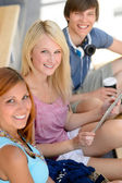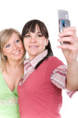 dwóch młodych szczęśliwą kobietą, biorąc ich obraz z kamery