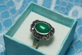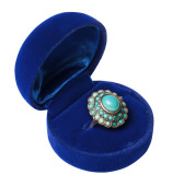 vintage pierścionek w kolorze niebieskim polu, na białym tle