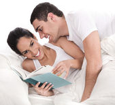 młody mężczyzna i kobieta leżącej razem na białej kanapie